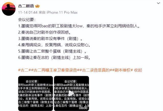 到了“高昂”的时候甚至把一整个大拳头都往这个女配音员的嘴巴里面塞,花样真是多啊。 最新的消息 11月14号,这个底层的打工人又发布了一条最新的录音,而这条录音的内容还是在证明他才是真正的编剧。 从维基百科中可以看到《繁花》的资料上他已经成了“主要编剧”,看来他的反抗已经开始有效果了。